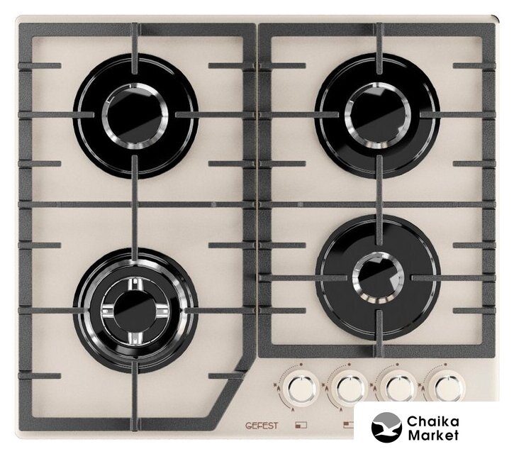 газовая на 4 конфорки, закаленное стекло, мощность: 7000 Вт, автоматический электроподжиг, газ-контроль, решетки: чугун, независимая установка