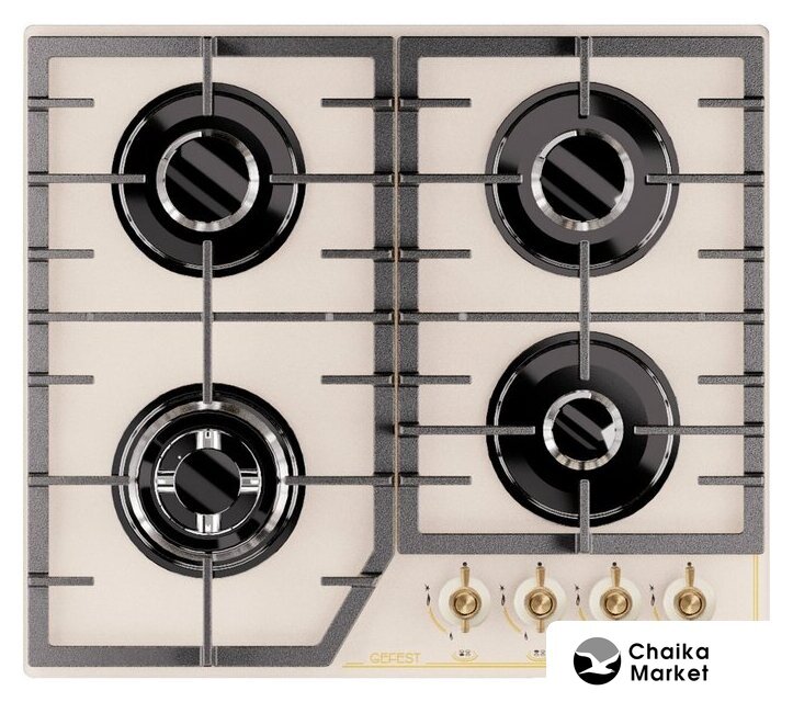газовая на 4 конфорки, закаленное стекло, мощность: 7400 Вт, автоматический электроподжиг, газ-контроль, решетки: чугун, независимая установка