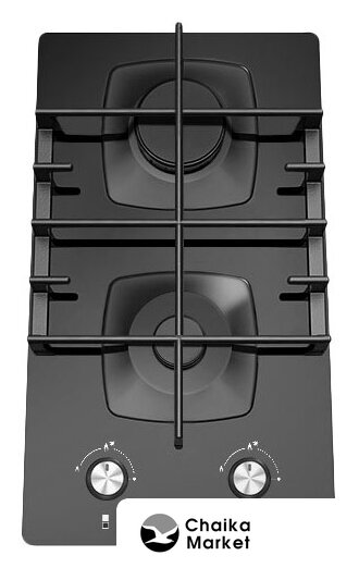 газовая на 2 конфорки, закаленное стекло, мощность: 4300 Вт, автоматический электроподжиг, газ-контроль, решетки: чугун, независимая установка, размеры (ШхГ): 29x51.5 см