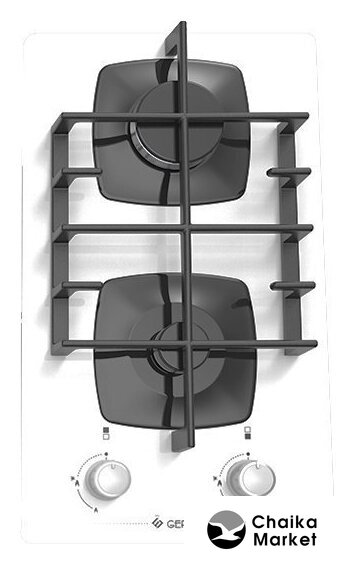 газовая на 2 конфорки, эмалированная сталь, мощность: 4300 Вт, автоматический электроподжиг, газ-контроль, решетки: чугун, независимая установка