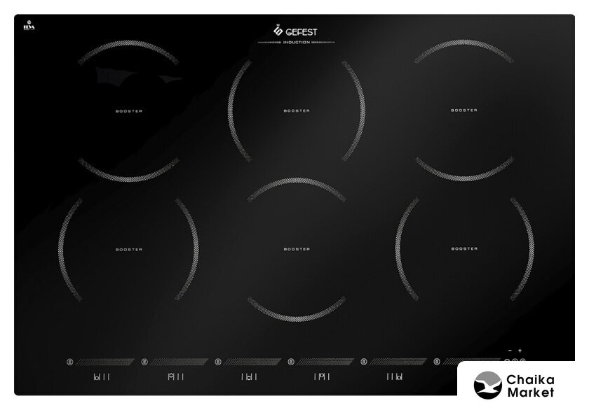 Подробная информация о конфорках | передняя левая 180 мм, 3700/2100 Втзадняя левая 180 мм, 3700/2100 Втпередняя средняя 180 мм, 3700/2100 Втзадняя средняя 180 мм, 3700/2100 Втпередняя правая 180 мм, 3700/2100 Втзадняя правая 180 мм, 3700/2100 Вт |