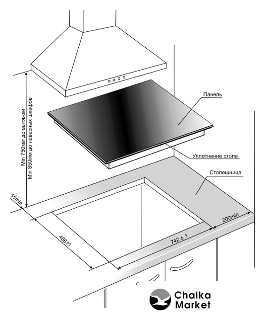 индукционная на 4 конфорки, cтеклокерамика, независимая установка