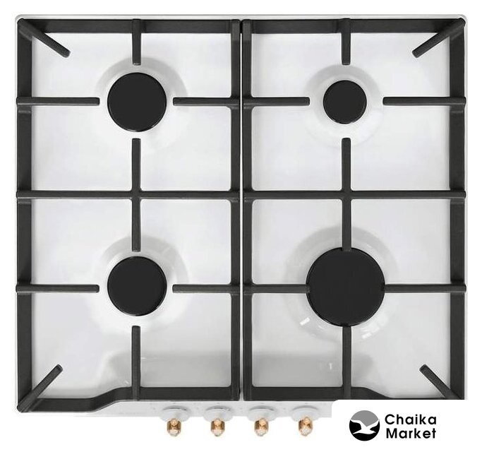 газовая на 4 конфорки, эмалированная сталь, мощность: 7600 Вт, автоматический электроподжиг, газ-контроль, решетки: чугун, независимая установка, размеры (ШхГ): 59x52 см