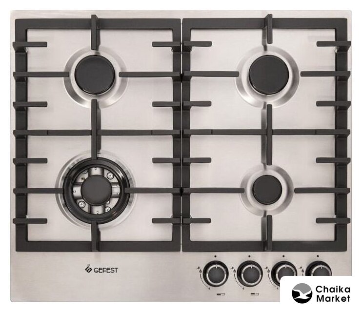 газовая на 3 конфорки, нержавеющая сталь, мощность: 5300 Вт, автоматический электроподжиг, газ-контроль, решетки: эмалированная сталь, независимая установка