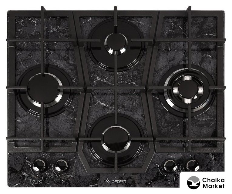 газовая на 4 конфорки, закаленное стекло, мощность: 8000 Вт, автоматический электроподжиг, газ-контроль, решетки: чугун, размеры (ШхГ): 58.4x51 см