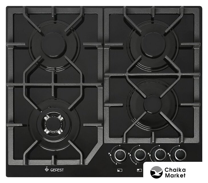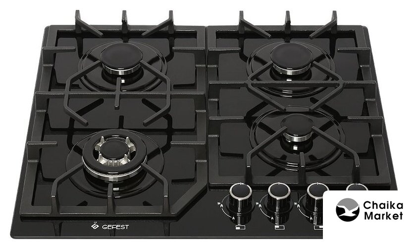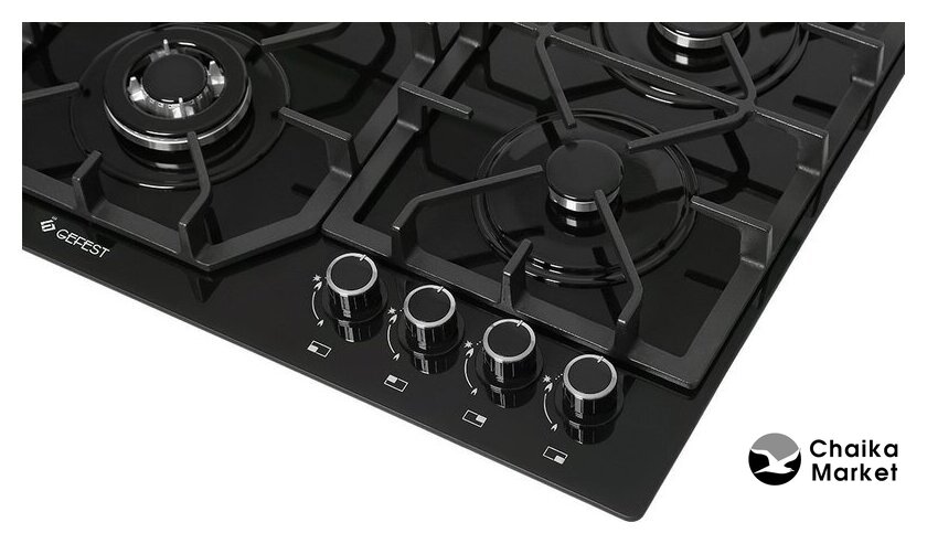 газовая на 4 конфорки, закаленное стекло, мощность: 7800 Вт, газ-контроль, решетки: чугун, независимая установка, размеры (ШхГ): 60x52 см