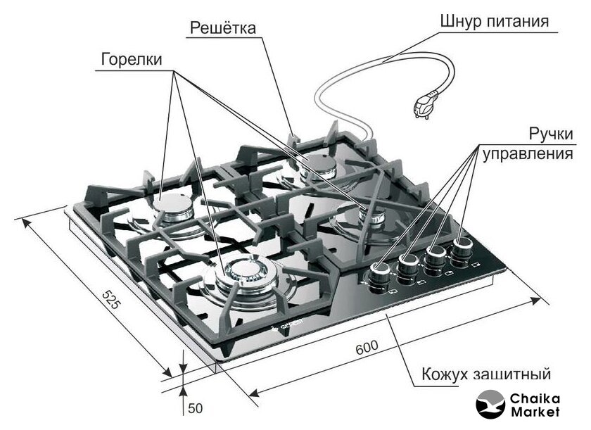 Тип варочной поверхности | газовая |