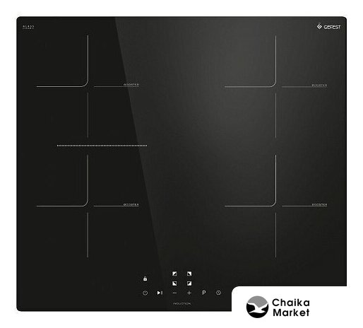 индукционная на 4 конфорки, cтеклокерамика, мощность: 6800 Вт, независимая установка, размеры (ШхГ): 59x52 см