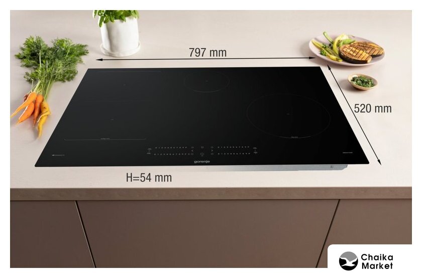 индукционная на 4 конфорки, cтеклокерамика, независимая установка, размеры (ШхГ): 71x52 см