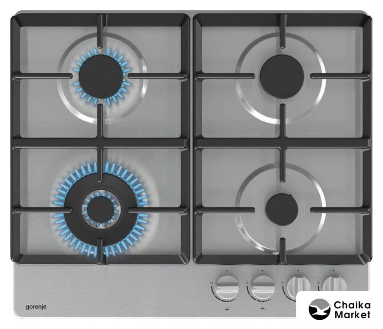 газовая на 4 конфорки, закаленное стекло, мощность: 8300 Вт, автоматический электроподжиг, газ-контроль, решетки: чугун, размеры (ШхГ): 60x52 см