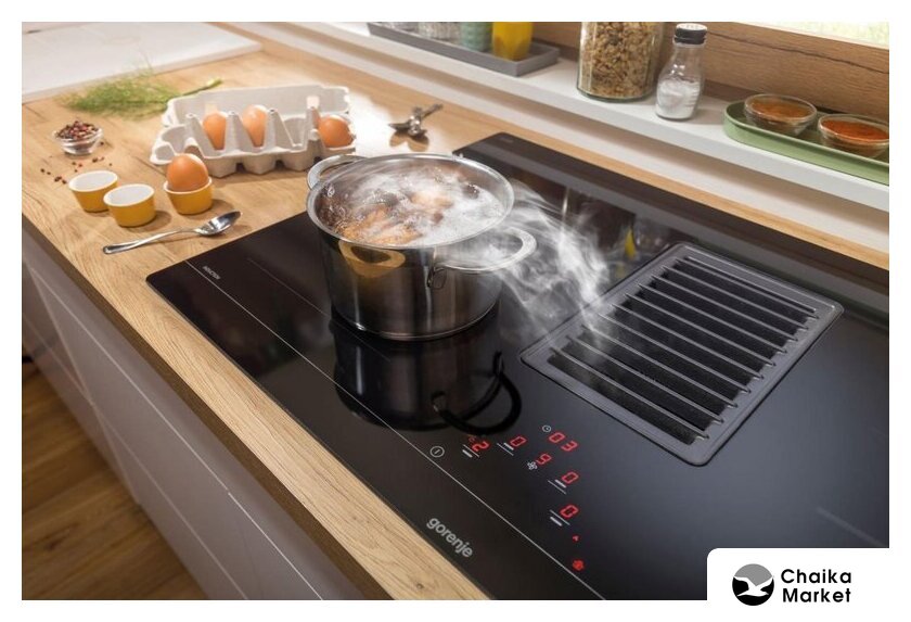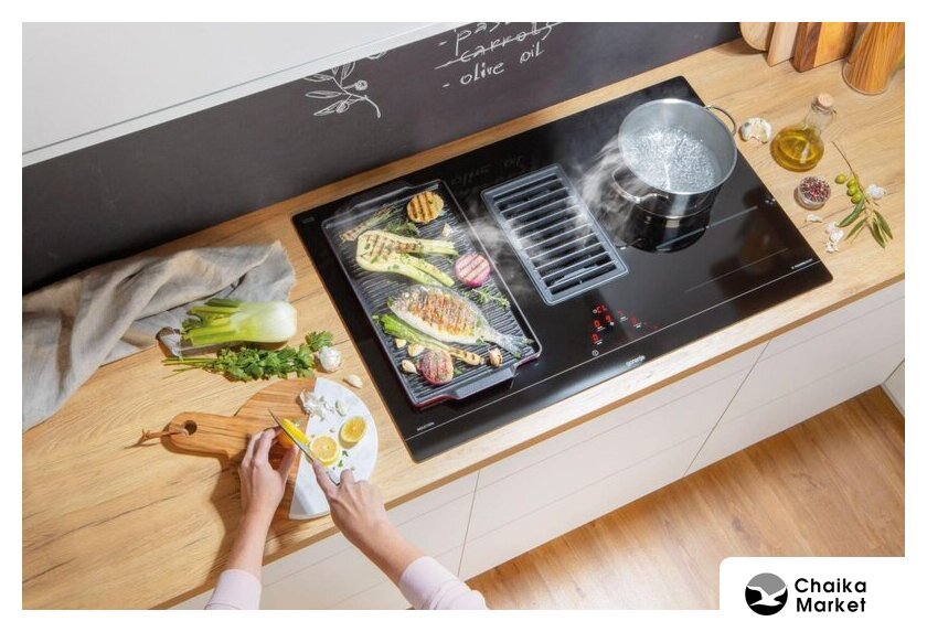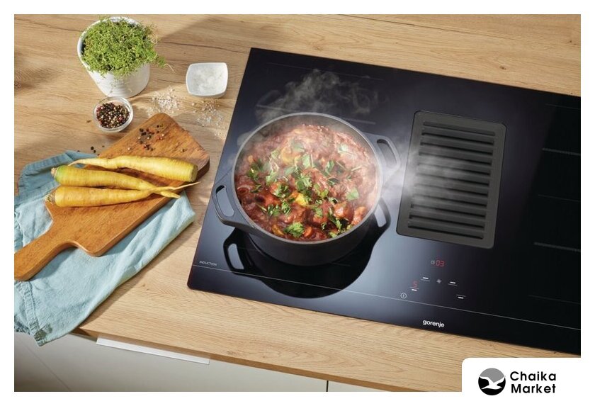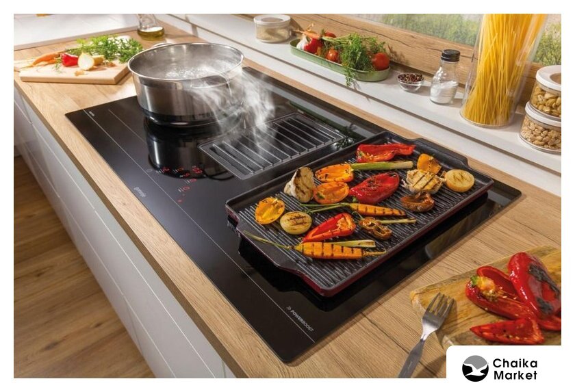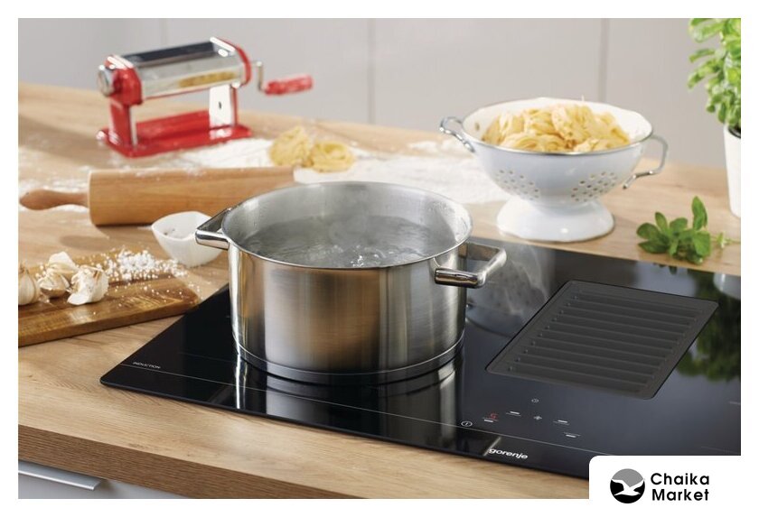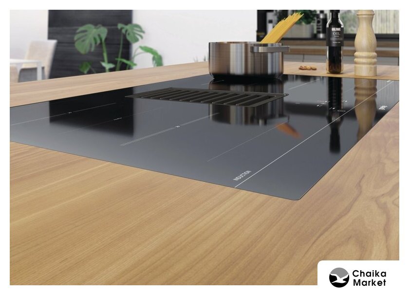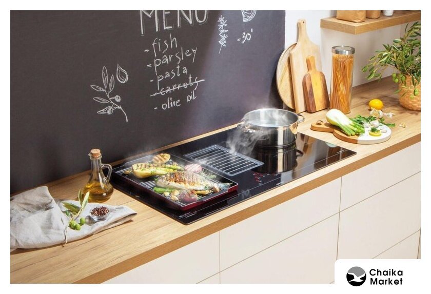 индукционная на 8 конфорок, закаленное стекло, мощность: 7400 Вт, автоматика закипания, независимая установка, размеры (ШхГ): 77x51 см