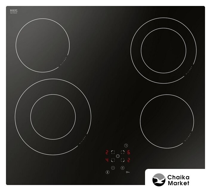 HiLight на 4 конфорки, cтеклокерамика, мощность: 6800 Вт, автоматика закипания, независимая установка, размеры (ШхГ): 57.6x51.8 см