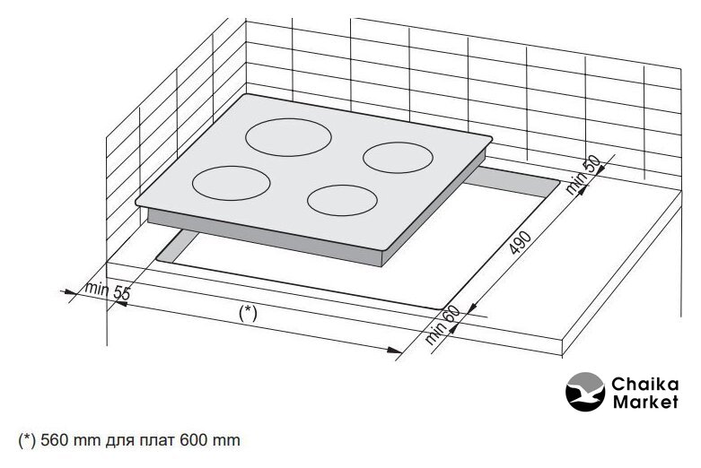 HiLight на 4 конфорки, cтеклокерамика, мощность: 6000 Вт, независимая установка, размеры (ШхГ): 58x51 см