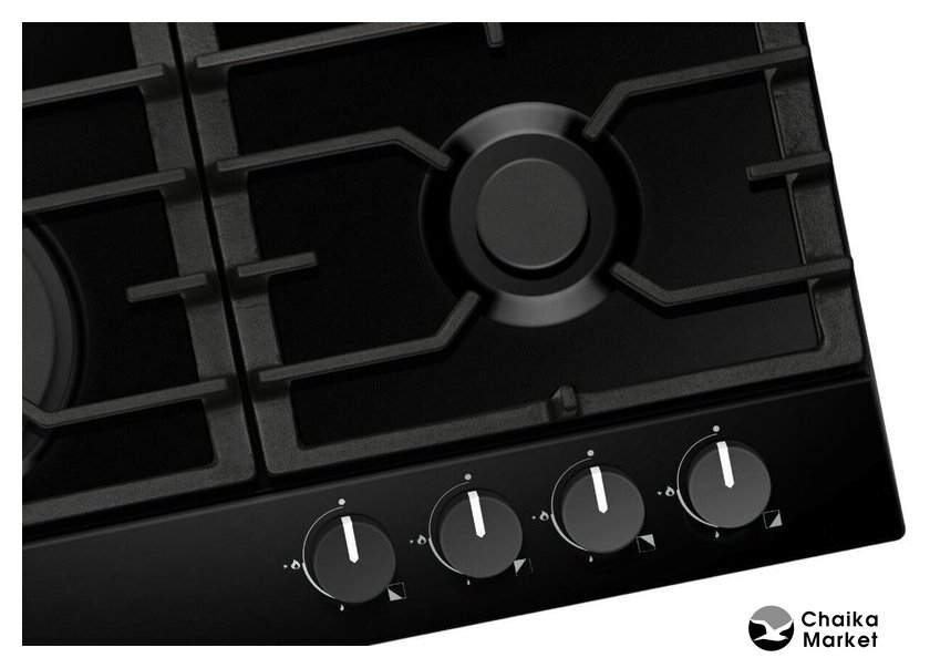 газовая на 4 конфорки, закаленное стекло, мощность: 7000 Вт, автоматический электроподжиг, газ-контроль, решетки: чугун, независимая установка