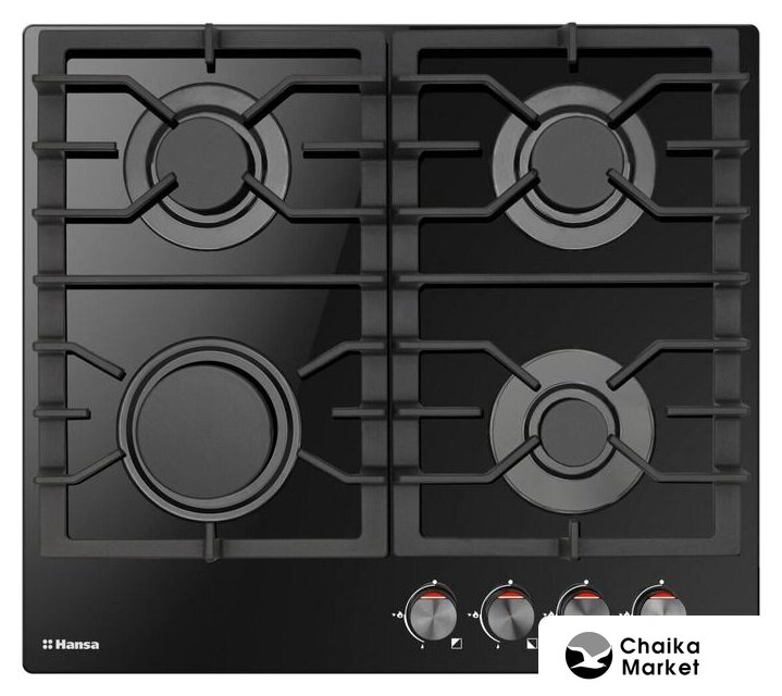 газовая на 4 конфорки, закаленное стекло, мощность: 8000 Вт, автоматический электроподжиг, газ-контроль, решетки: чугун, независимая установка, размеры (ШхГ): 58.4x51 см
