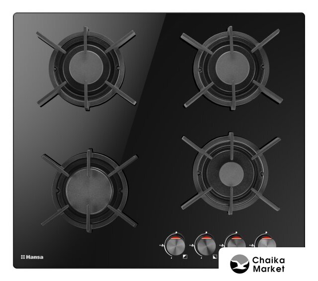 газовая на 4 конфорки, закаленное стекло, мощность: 8000 Вт, автоматический электроподжиг, газ-контроль, решетки: чугун, независимая установка, размеры (ШхГ): 61x51 см