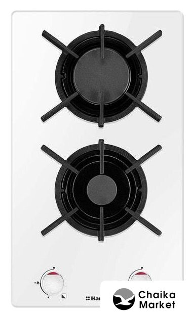 газовая на 2 конфорки, закаленное стекло, мощность: 4700 Вт, автоматический электроподжиг, газ-контроль, решетки: чугун, независимая установка, размеры (ШхГ): 29x51.5 см
