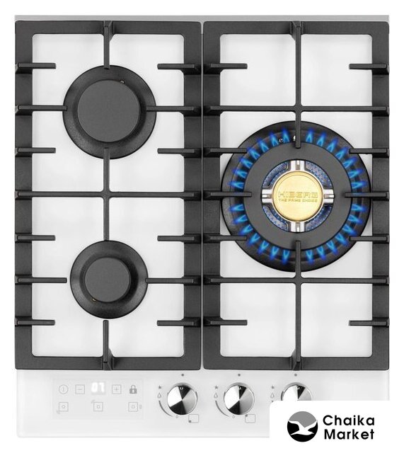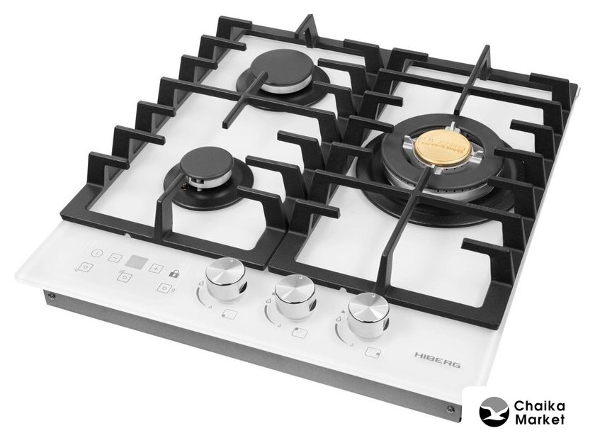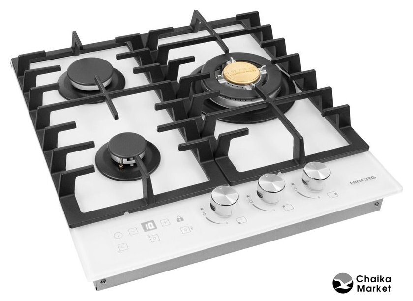 | Подробная информация о конфорках | Одна конфорка WOK с тройным рядом пламени, мощностью 3.4 кВт, две стандартные газовые конфорки. |