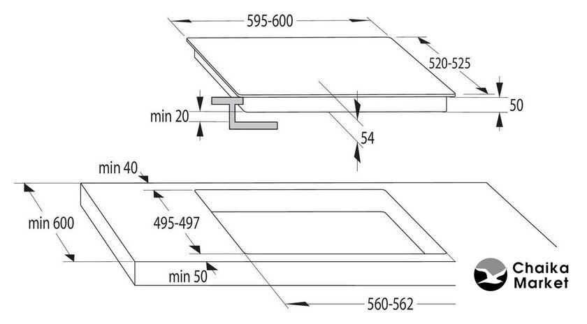 индукционная на 4 конфорки, cтеклокерамика, мощность: 6900 Вт, независимая установка, размеры (ШхГ): 60.2x52 см
