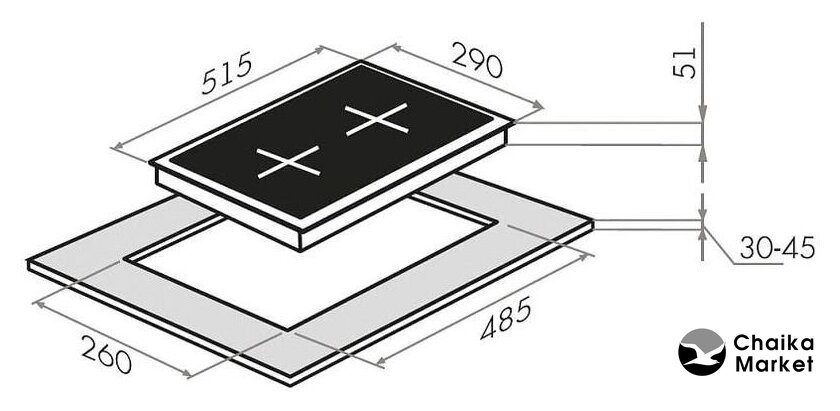 | Подробная информация о конфорках | 2 конфорки мощностью: 2600, 1700 Вт |
