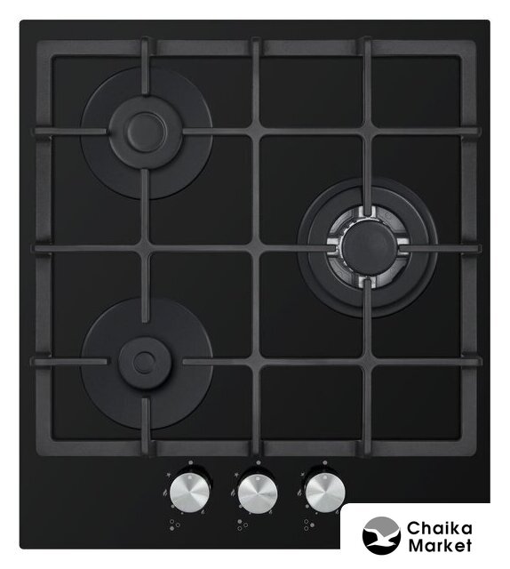 газовая на 3 конфорки, закаленное стекло, мощность: 6200 Вт, автоматический электроподжиг, газ-контроль, решетки: чугун, независимая установка, размеры (ШхГ): 45x51 см