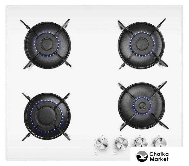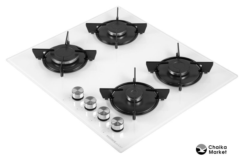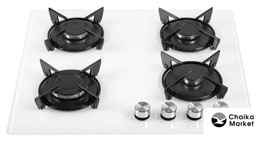 газовая на 4 конфорки, закаленное стекло, мощность: 6800 Вт, автоматический электроподжиг, газ-контроль, решетки: чугун, независимая установка, размеры (ШхГ): 61x51 см