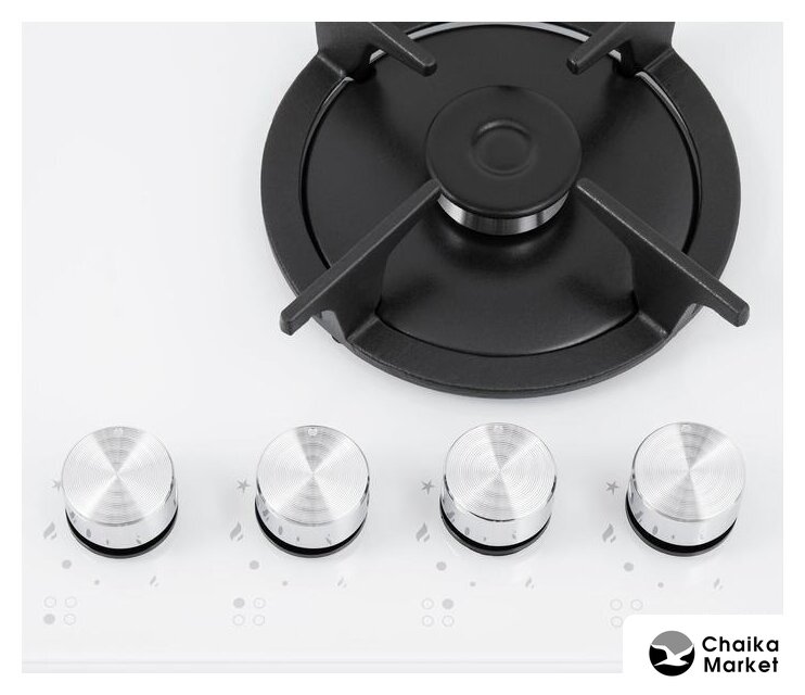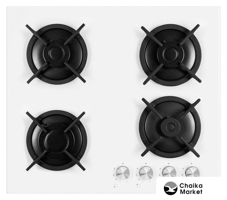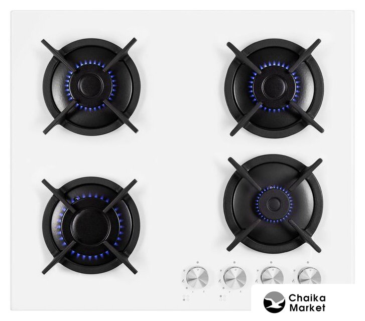 газовая на 4 конфорки, закаленное стекло, мощность: 7700 Вт, автоматический электроподжиг, газ-контроль, решетки: чугун, независимая установка, размеры (ШхГ): 60x52.5 см