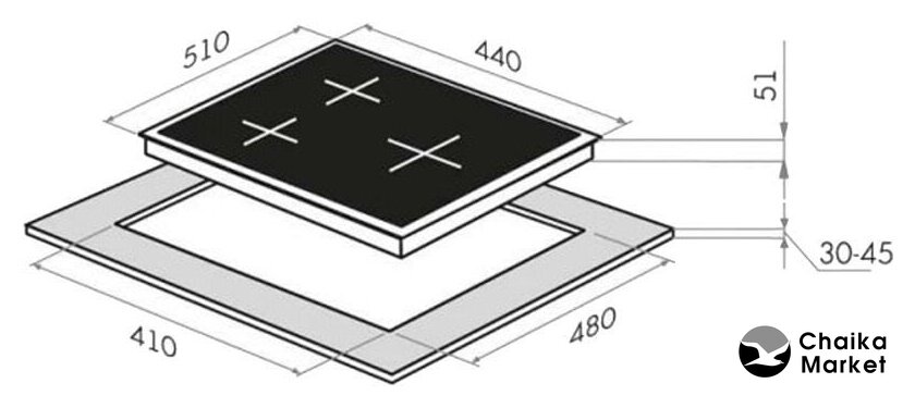 Подробная информация о конфорках | 1 быстрая х 2600Вт1 полубыстрая х 1700Вт1 дополнительная х 1000Вт |