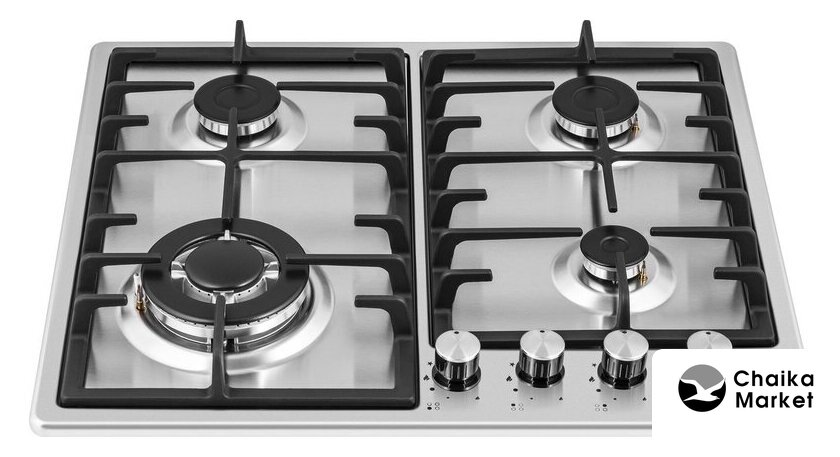 газовая на 4 конфорки, закаленное стекло, мощность: 8100 Вт, автоматический электроподжиг, газ-контроль, решетки: чугун, независимая установка, размеры (ШхГ): 60x52 см