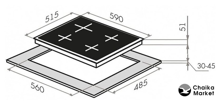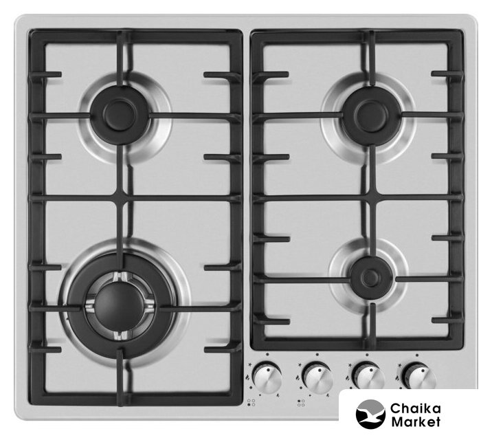 газовая на 4 конфорки, закаленное стекло, мощность: 7700 Вт, автоматический электроподжиг, газ-контроль, решетки: чугун, независимая установка, размеры (ШхГ): 60x52.5 см