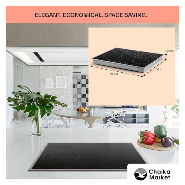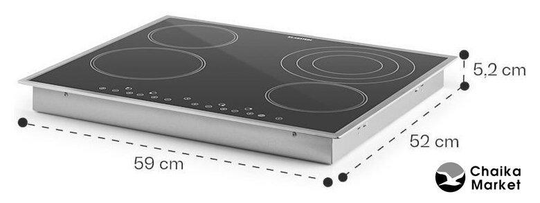 HiLight на 4 конфорки, cтеклокерамика, мощность: 6600 Вт, независимая установка, размеры (ШхГ): 59.2x52.2 см