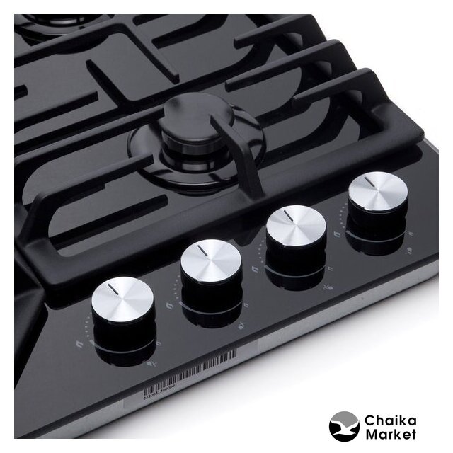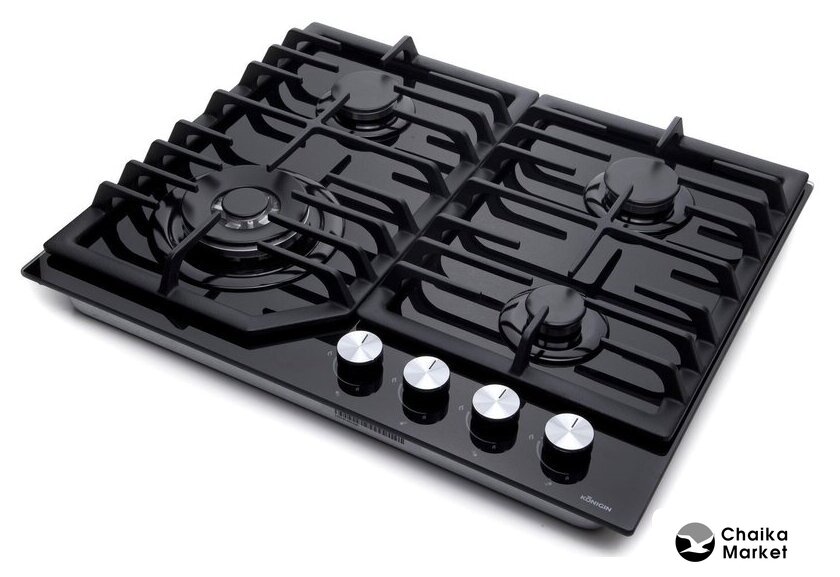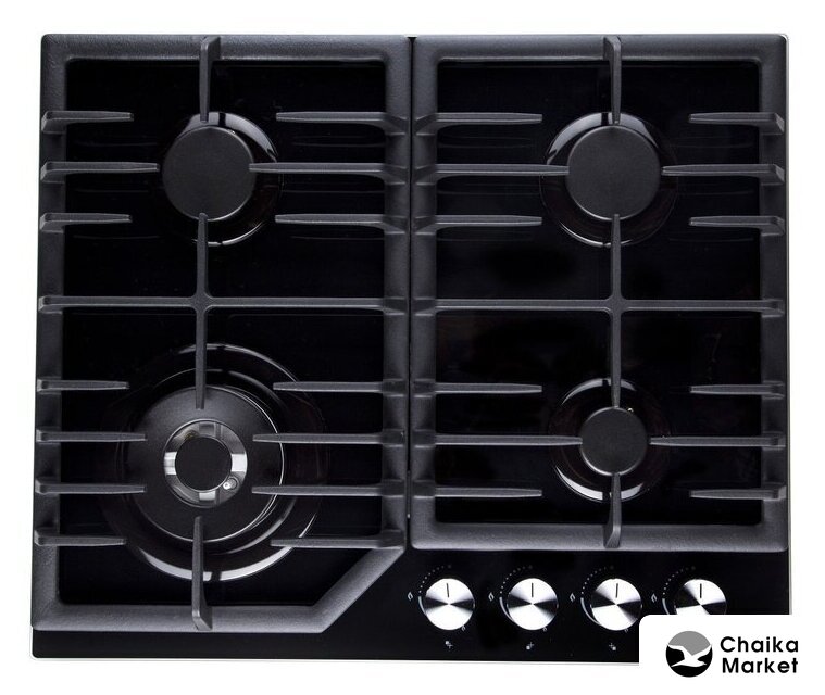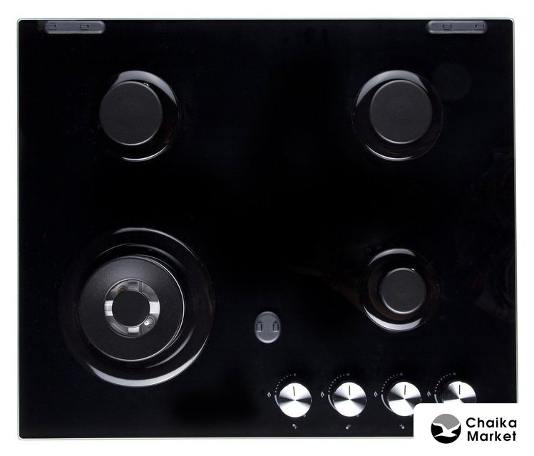 газовая на 4 конфорки, закаленное стекло, мощность: 8300 Вт, автоматический электроподжиг, газ-контроль, решетки: чугун, размеры (ШхГ): 60x52 см