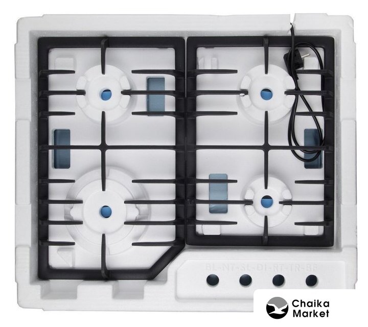 газовая на 4 конфорки, эмалированная сталь, мощность: 8800 Вт, автоматический электроподжиг, газ-контроль, решетки: чугун, размеры (ШхГ): 59.5x51 см