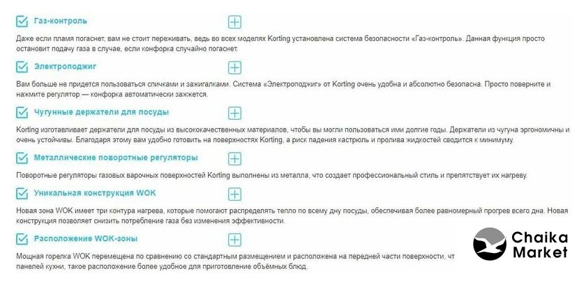 Подробная информация о конфорках | 1×1.75 кВт; 1×4 кВт; 1×1.75 кВт; 1×1.0 кВт |