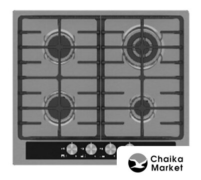 газовая на 4 конфорки, нержавеющая сталь, мощность: 10100 Вт, автоматический электроподжиг, газ-контроль, решетки: чугун, размеры (ШхГ): 60x51 см