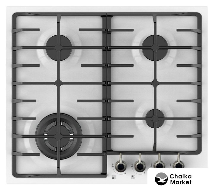 газовая на 4 конфорки, эмалированная сталь, мощность: 8350 Вт, автоматический электроподжиг, газ-контроль, решетки: чугун, независимая установка, размеры (ШхГ): 58x51.2 см