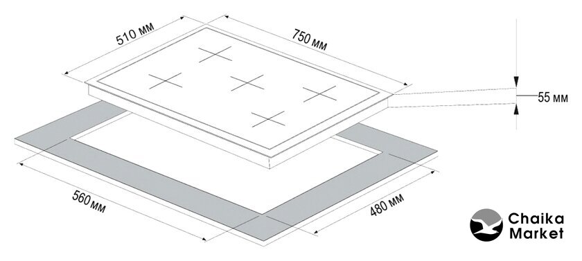 газовая на 4 конфорки, закаленное стекло, мощность: 7500 Вт, решетки: чугун, независимая установка, размеры (ШхГ): 59x52 см