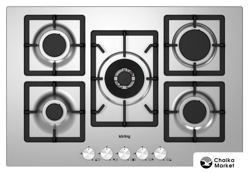 Подробная информация о конфорках | Средняя конфорка 1750 Вт (2 шт.);Маленькая конфорка 1000 Вт;ВОК-конфорка 4000 Вт;Большая конфорка 3000 Вт. |