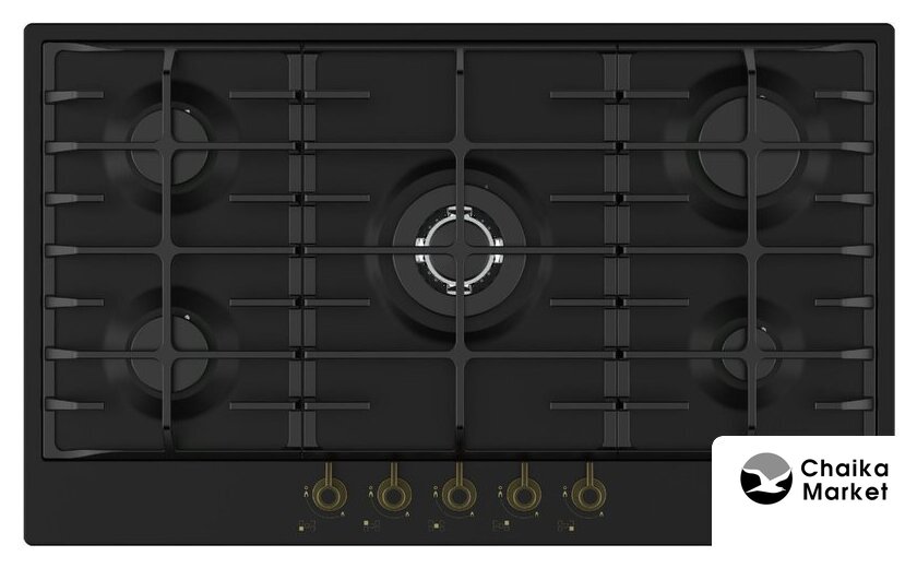 газовая на 5 конфорок, закаленное стекло, мощность: 11000 Вт, автоматический электроподжиг, газ-контроль, решетки: чугун, независимая установка, размеры (ШхГ): 86x51 см