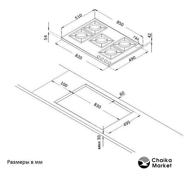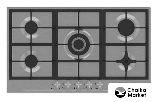 газовая на 5 конфорок, закаленное стекло, мощность: 11000 Вт, автоматический электроподжиг, газ-контроль, решетки: чугун, независимая установка, размеры (ШхГ): 86x51 см