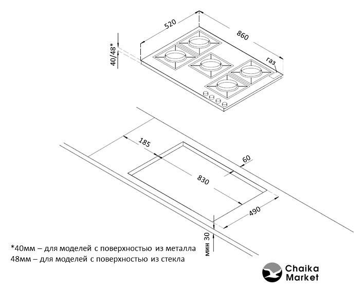 газовая на 4 конфорки, нержавеющая сталь, мощность: 7500 Вт, автоматический электроподжиг, газ-контроль, решетки: чугун, независимая установка, размеры (ШхГ): 58.2x52 см