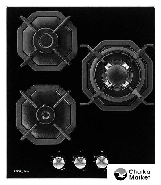 газовая на 3 конфорки, эмалированная сталь, мощность: 6350 Вт, автоматический электроподжиг, газ-контроль, решетки: чугун, размеры (ШхГ): 45x52 см