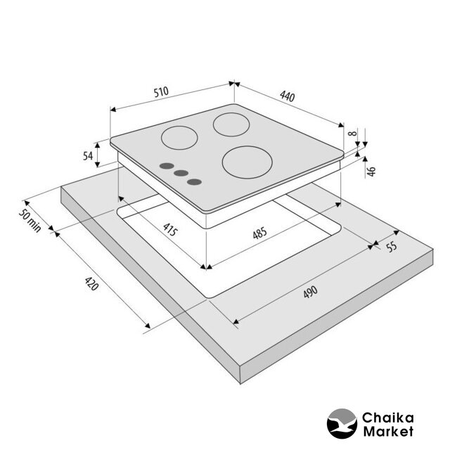 газовая на 3 конфорки, закаленное стекло, мощность: 5950 Вт, автоматический электроподжиг, газ-контроль, решетки: чугун, независимая установка, размеры (ШхГ): 45x52.5 см