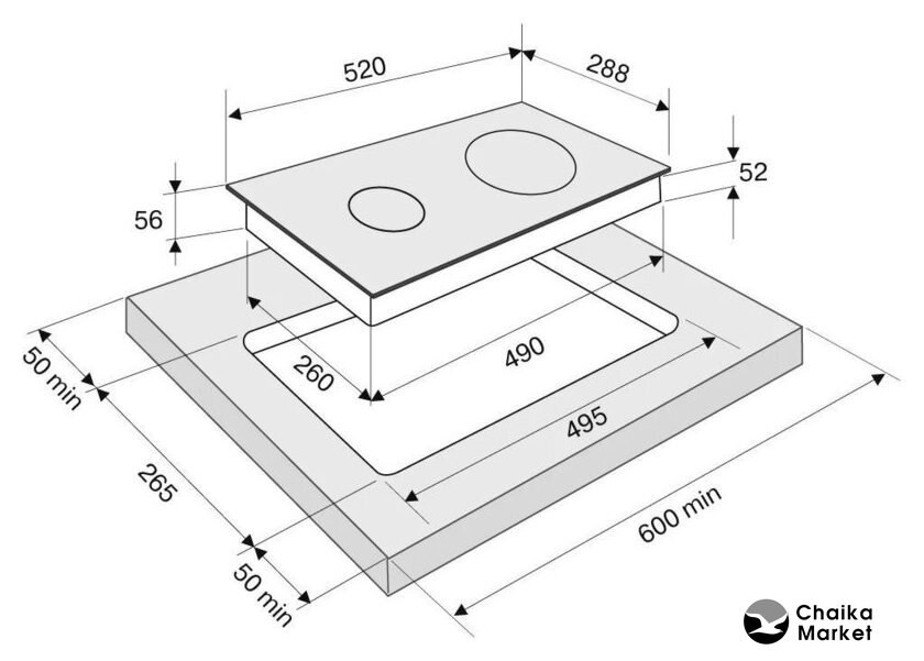 индукционная на 2 конфорки, cтеклокерамика, мощность: 3500 Вт, независимая установка, размеры (ШхГ): 52x59 см