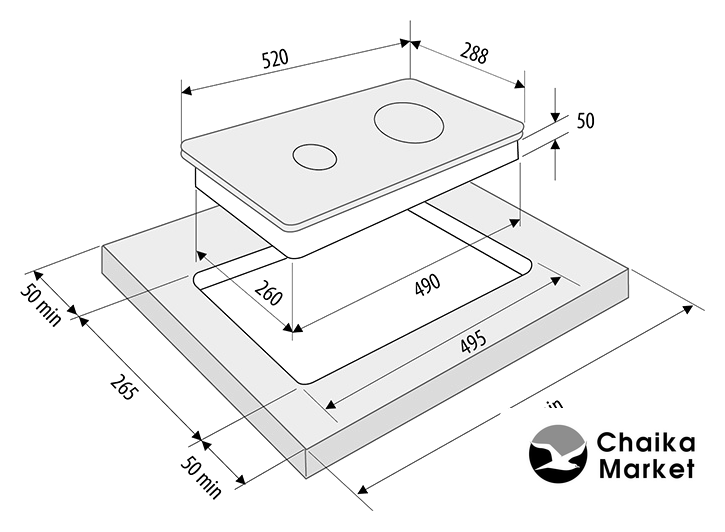 индукционная на 2 конфорки, cтеклокерамика, мощность: 3500 Вт, независимая установка, размеры (ШхГ): 28.8x52 см