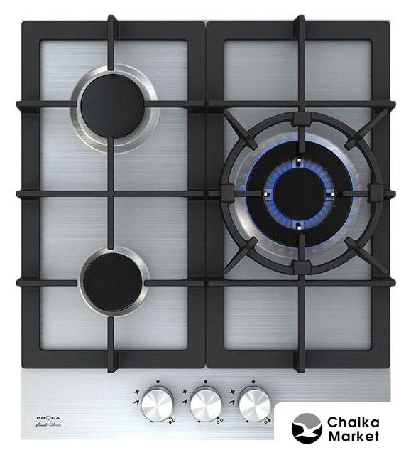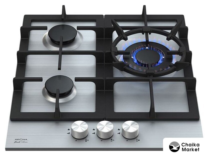 газовая на 4 конфорки, нержавеющая сталь, мощность: 8000 Вт, автоматический электроподжиг, газ-контроль, решетки: чугун, независимая установка, размеры (ШхГ): 58x50 см