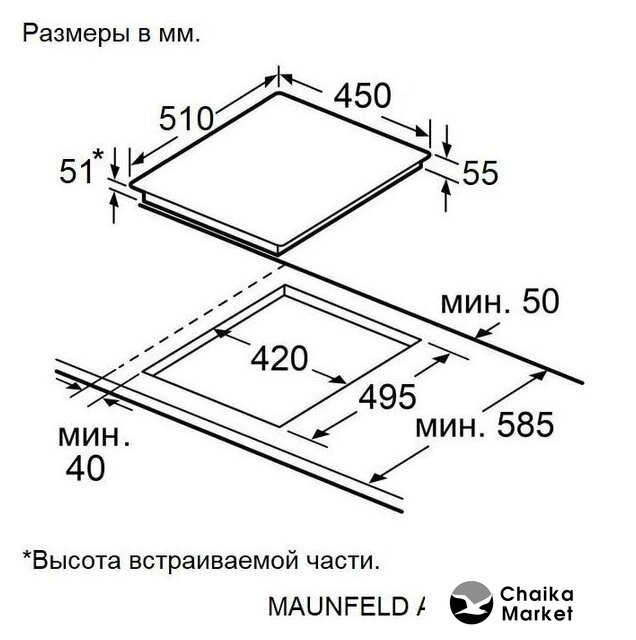 HiLight на 3 конфорки, cтеклокерамика, мощность: 5000 Вт, независимая установка, размеры (ШхГ): 45x51 см