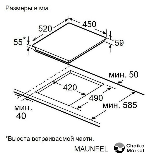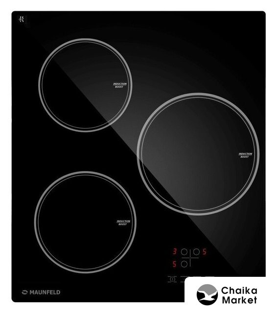 индукционная на 3 конфорки, cтеклокерамика, мощность: 6200 Вт, независимая установка, размеры (ШхГ): 45x52 см