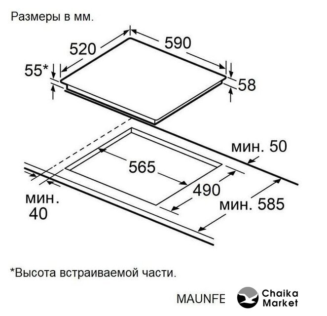 индукционная на 4 конфорки, cтеклокерамика, мощность: 7000 Вт, независимая установка, размеры (ШхГ): 58x51 см