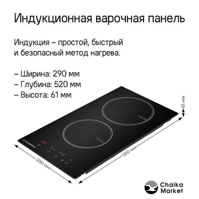 индукционная на 2 конфорки, cтеклокерамика, мощность: 3600 Вт, независимая установка, размеры (ШхГ): 29x52 см